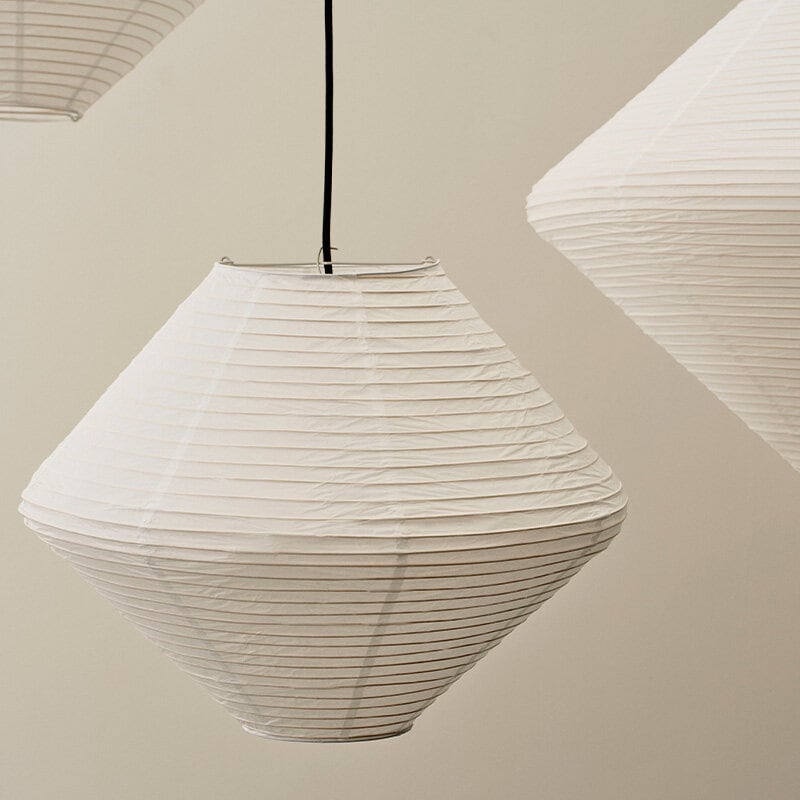HAYs Paper Shade-serie är tillverkad i lätt papper med en ribbad stomme av bambu och sprider ett mjukt och behagligt ljus i hemmet. Lampskärmarna finns i flera olika former och storlekar och säljs utan sladdställ.