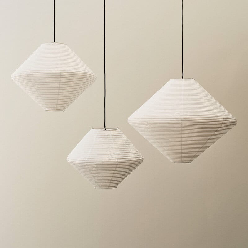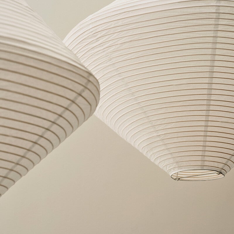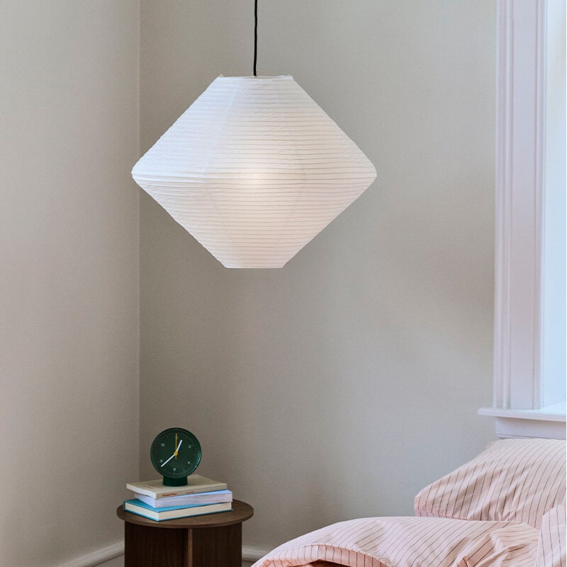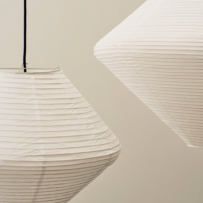 HAYs Paper Shade-serie är tillverkad i lätt papper med en ribbad stomme av bambu och sprider ett mjukt och behagligt ljus i hemmet. Lampskärmarna finns i flera olika former och storlekar och säljs utan sladdställ.