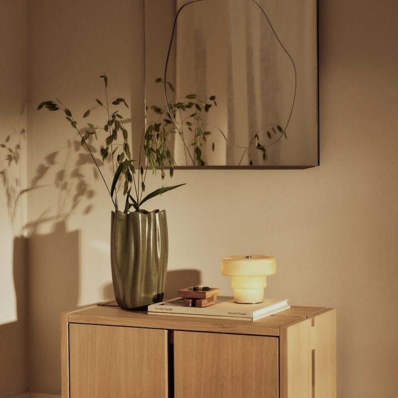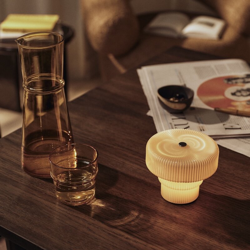 Ripple portabel lampa från Ferm Living är en stilren och kompakt bordslampa som sprider ett mjukt, atmosfäriskt sken var den än placeras. Den räfflade ytan ger lampan en elegant karaktär och ett vackert ljusspel, medan den uppladdningsbara funktionen gör den enkel att flytta mellan olika rum - perfekt för att skapa stämning både inne och ute vid torrt väder.