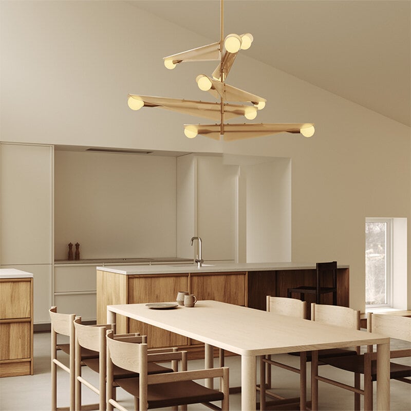 Inspirerad av de graciösa fallande platanfröna (sycamore seedpods) fångar Sycamore Chandelier naturens elegans och skönhet. Varje arm är utrustad med handblåsta glaspaneler som sveper mjukt över en borstad massiv mässingsram, vilket skapar ett varmt och inbjudande ljus. Lampans design reflekterar årstidernas rytm och de lugna, dansande sycamore-frönas rörelser under vår och höst. Den kombinerar konstnärlig estetik med funktionell belysning och blir ett iögonfallande inslag i vardagsrum, matsal eller exklusiva hotell- och kontorsmiljöer.