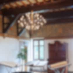 Med sin distinkta konstruktion där elkablarna medvetet exponeras, skapas ett grafiskt och nästan arkitektoniskt uttryck. De många ljuspunkterna sprider ett mjukt och jämnt ljus som ger rummet en varm och inbjudande atmosfär.