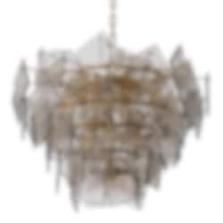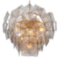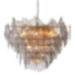 Biltmore Taklampa från Eichholtz kombinerar en antikmässingsram med elegant rökt glas, vilket skapar en balans mellan varm metallisk lyster och eterisk transparens. Denna ljuskrona fungerar som ett sofistikerat blickfång och sprider ett mjukt, harmoniskt ljus som förstärker känslan av lyx och elegans.