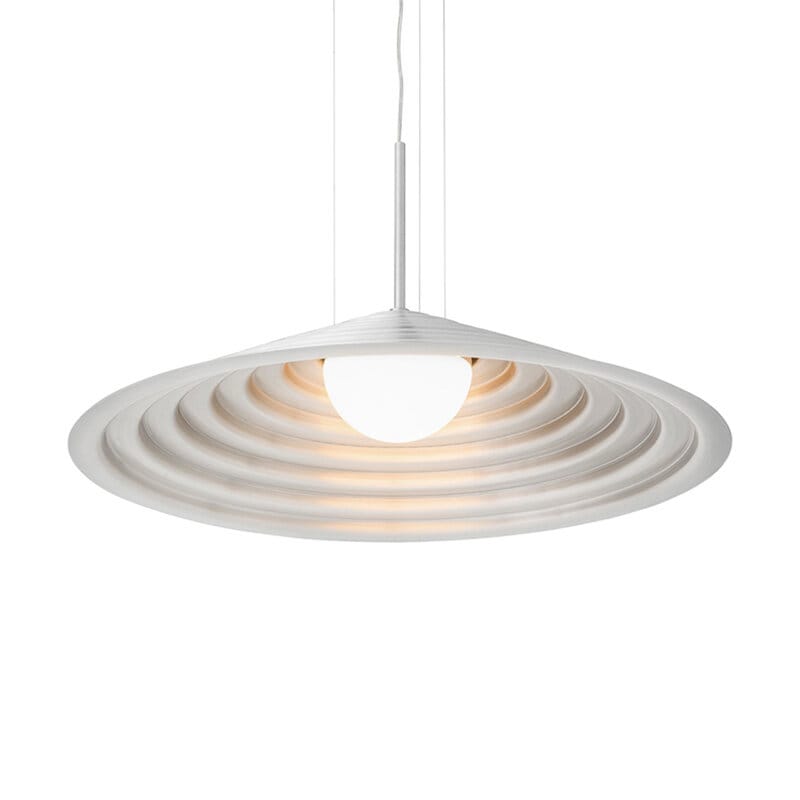 Chancery takpendel, ursprungligen designad för Chancery House i London, kombinerar arkitektonisk balans med tidlös elegans. Den vågformade, stegvist utformade silhuetten i borstad aluminium ger ett uttrycksfullt men lätt intryck, medan den opalvita LED-ljuskällan med integrerad diffusor sprider ett mjukt och behagligt sken som skapar en lugn och harmonisk atmosfär. Designad för att hänga högt och ge rummet en stillsam balans, förenar Chancery taklampa modern hantverksskicklighet med sofistikerad enkelhet – en belysning som utstrålar lugn, form och ljus.