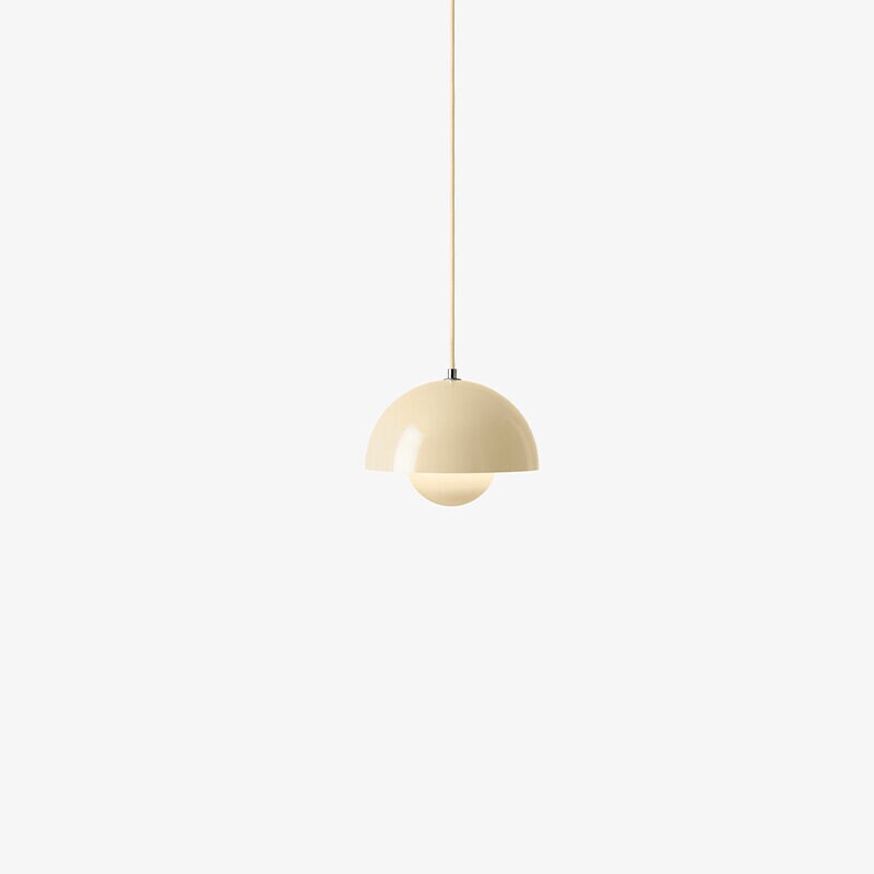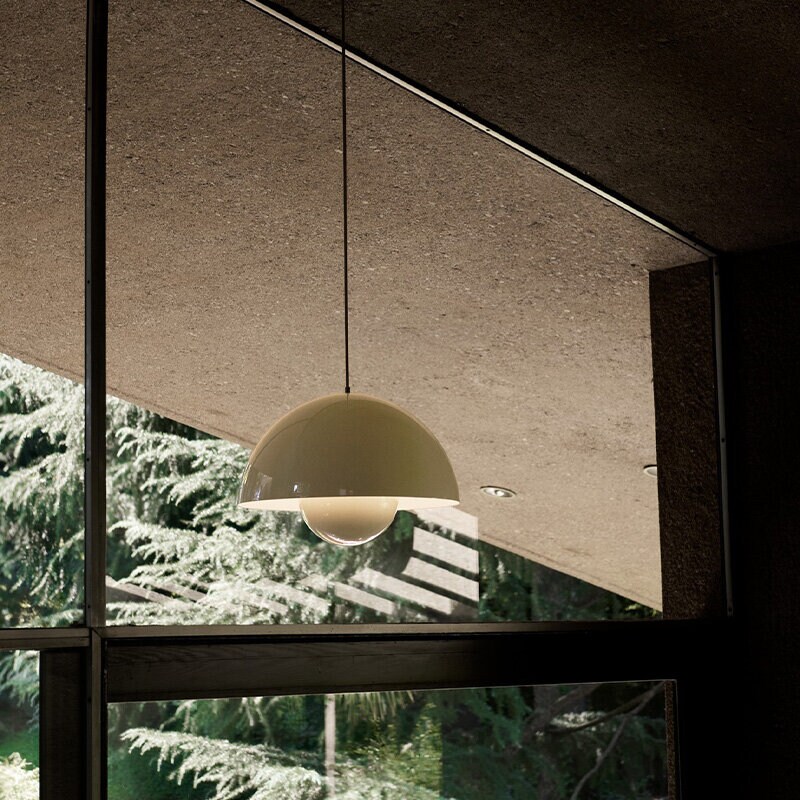 Design: Verner Panton, 1968. Flowerpot representerar ett tydligt brott med det konventionella och omfamnar en öppen, modern syn som förmedlar fred och harmoni. Därför kom den också att bli starkt förknippad med Flower Power-rörelsen under slutet av 1960-talet. Taklampan, med sina två kupolformade skärmar vända mot varandra, har visat en enastående hållbarhet i både form och uttryck. I dag räknas Flowerpot som en självklar designklassiker – lika ikonisk nu som då.