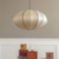 En vacker taklampa i tjockt siden som ger ett fint mjukt sken. Indochina serien kombinerar det bästa från två världar med den rena, enkla skandinaviska stilen och den exotiska stilen från Asien. En handgjord, unik lampa med personlighet som sätter prägel på ett helt rum.