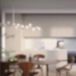 Two Spheres är ett mästerverk av minimalistisk design. Denna lampa består av två glaskupor som skapar en subtil och diffus belysning. Dess rena och enkla form gör att den smälter in i olika inredningsstilar samtidigt som den ger en distinkt skönhet till rummet. Two Spheres är en hyllning till enkelhet och elegans.