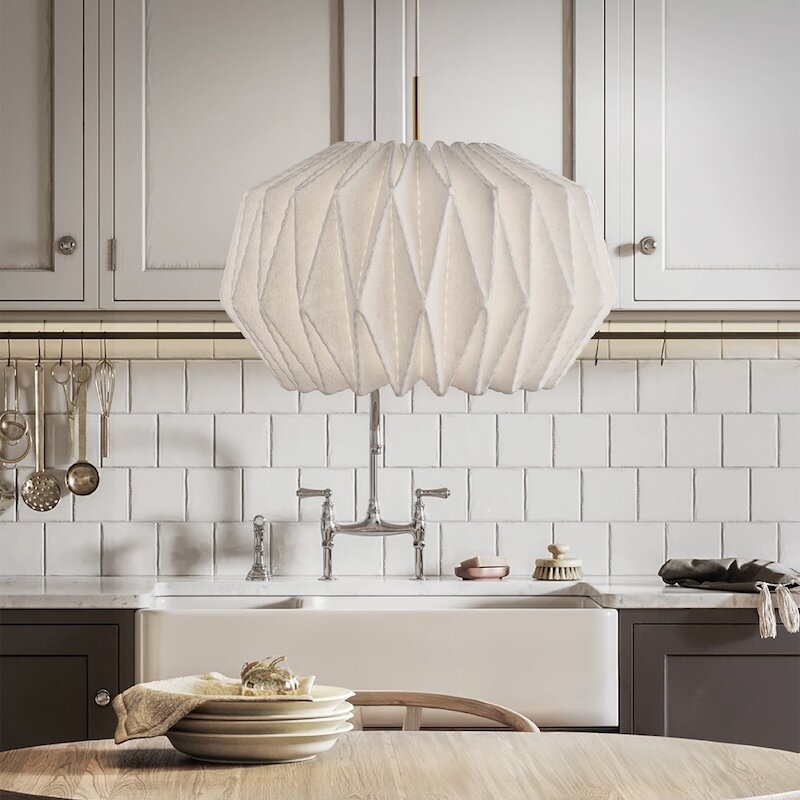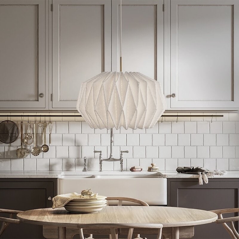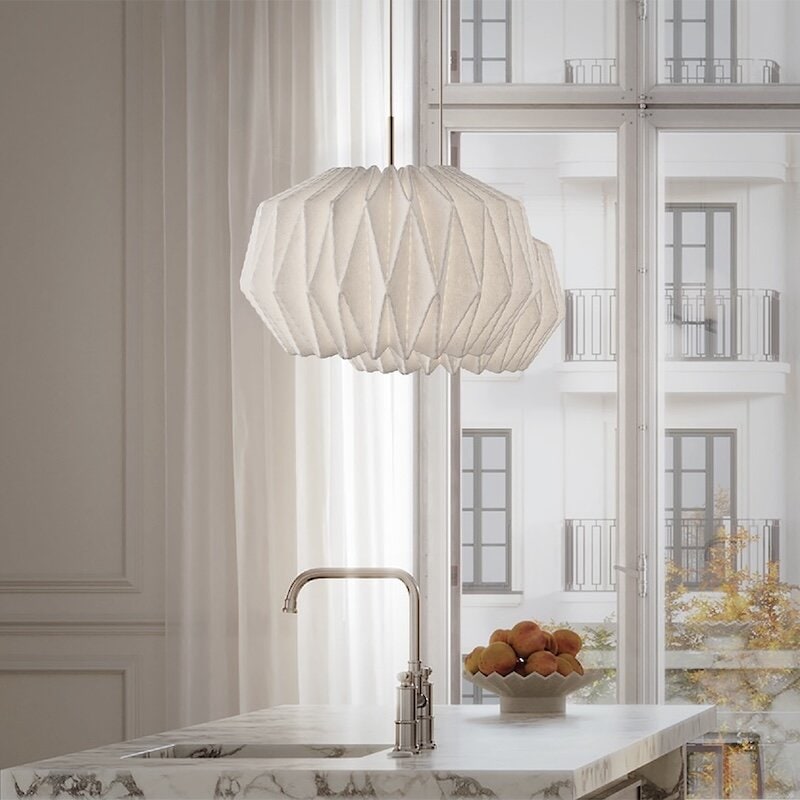 Softly Pleated I är en pendel i handvikt filt, designad av Philip Bro. Den kombinerar klassisk dansk design och traditionellt hantverk med moderna material. Lampan sprider ett varmt, stämningsfullt sken och ett tydligt nedåtriktat ljus, perfekt som taklampa över matbordet, i vardagsrummet eller i större rum som hotell och restauranger.