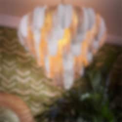 Denna exklusiva ljuskrona fungerar som ett stilfullt blickfång i rummet och skapar en varm, inbjudande atmosfär med sitt mjuka ljus och sofistikerade design. Saint Lucia L är designad för att ge din inredning en unik balans mellan naturinspiration och modern lyx, perfekt för både vardagsrum, matsal och entré.