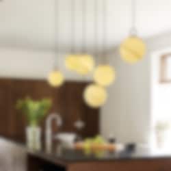 Denna lampserie är resultatet av estetisk och materialforskning, där opalglas med marmordekor kombineras med en sofistikerad mässingsfinish.