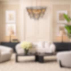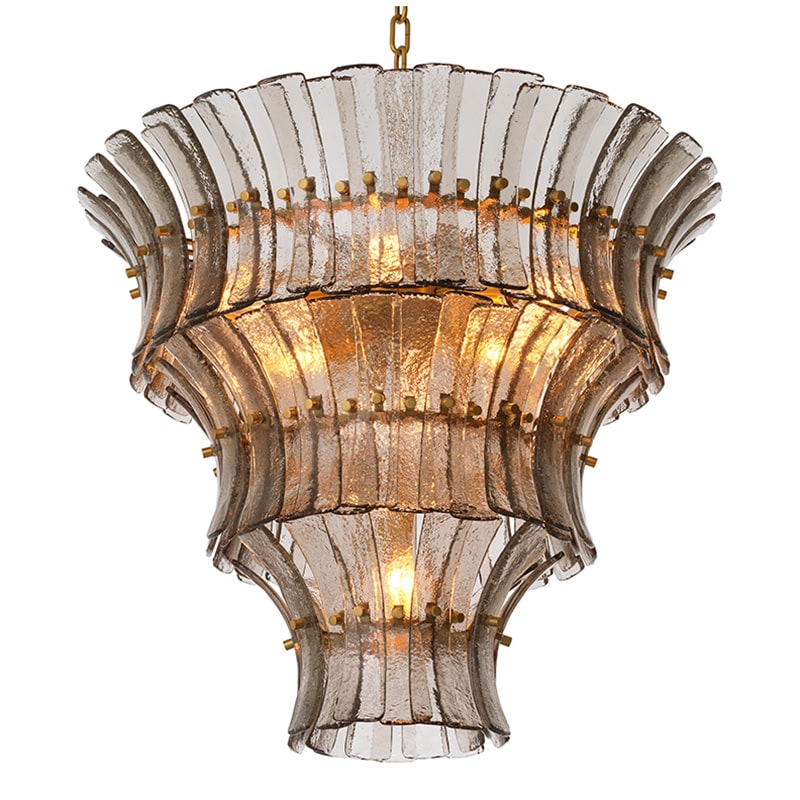 Toscano Taklampa från Eichholtz är en handgjord ljuskrona tillverkad av rökt glas som skapar en sofistikerad och tidlös atmosfär. Den eleganta designen hänger majestätiskt och fungerar som ett ikoniskt blickfång i alla typer av interiörer.