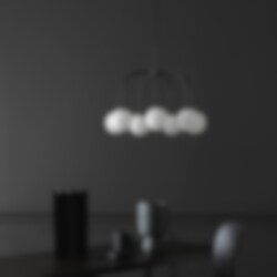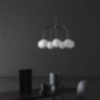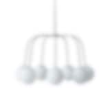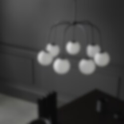 En elegant taklampa i modern design som är en fin detalj och passar i hemmets alla rum. Den har sju armar, försedd med lika många ljuskällor med vita glaskulor som sprider ett mjukt varmt sken.
