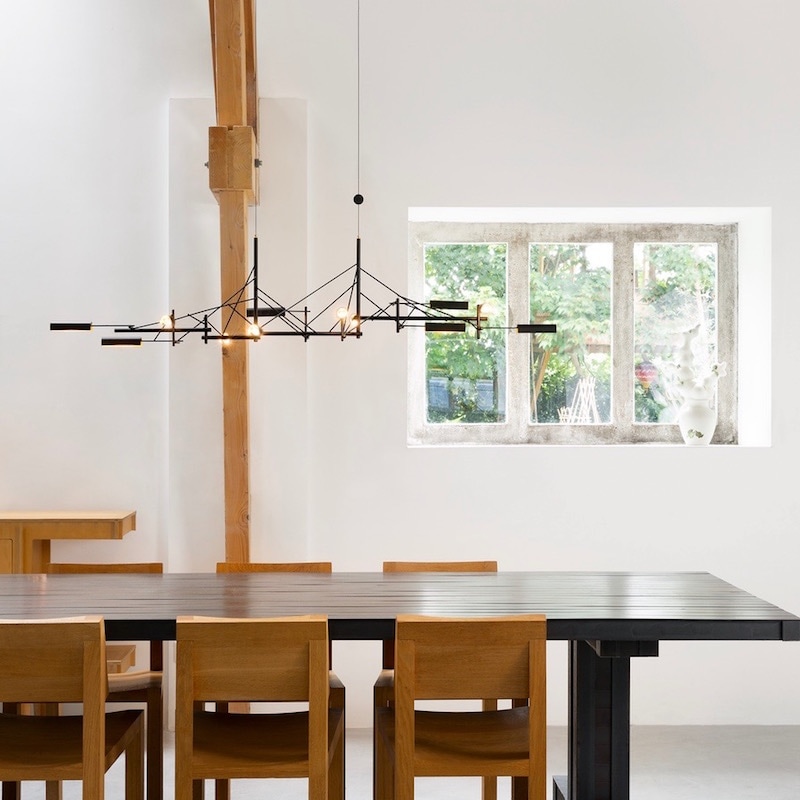 Tinkering passar särskilt väl ovanför matbord eller i öppna ytor där designen får ta plats. Kombinationen av teknisk precision och lekfull form gör den till ett tydligt statement i rummet – en armatur som inte bara lyser upp, utan också definierar helheten.