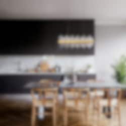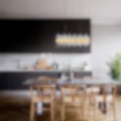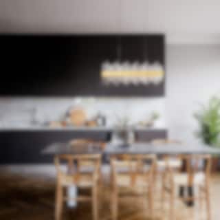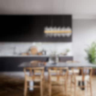 Triumph Bar är särskilt väl lämpad över matbordet, där den fungerar både som dekorativ detalj och som effektiv ljuskälla. Lampan hängs upp med justerbara vajrar, vilket gör det enkelt att anpassa höjden efter rummets förutsättningar.