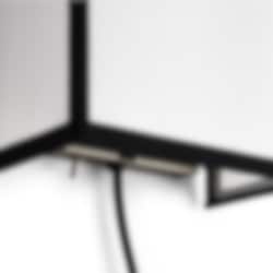 Skärmen är tillverkad av ECOPET™, ett material framställt av återvunnen PET-plast, vilket ger en halvt genomskinlig