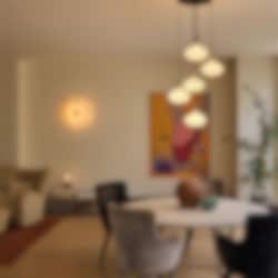 Magma Flush Mount är en innovativ lampa från Tala, känd för sina dekorativa glasdiffusorer tillverkade av återvunna solpaneler. Den ytmonterade designen ger en elegant och diskret profil, medan ramen i massiv mässing och fem matte vita G70-glödlampor skapar ett sofistikerat uttryck.