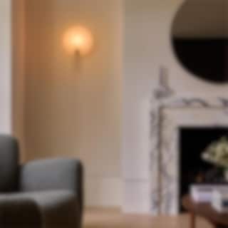 Magma Wall Light är en innovativ belysningsserie från Tala, känd för sina dekorativa glasdiffusorer tillverkade av återvunna solpaneler. Den ytmonterade designen ger en elegant och diskret profil, medan ramen i massiv mässing och en enda matte vit G70-glödlampa skapar en stilren kontrast.