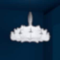 En spektakulär och mycket dekorativ och speciell taklampa vars stålkonstruktion spunnits in i en "kokong". Detta ger lampan ett behagligt diffust ljus, samtidigt som kristallgloben i botten på kronan ger en glittrande nedåtriktat ljus.