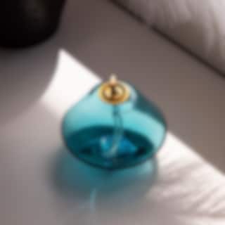 Den fantastiska oljelampan finns i två olika storlekar och erbjuder bland annat vackra färger som exempelvis turkos, havsblå och saffran. Det finns även färgat transparent glas som amber, saffir och emerald med mera. Modellen i frostat glas är också väldigt omtyckt.