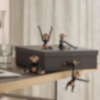 Den unika hantverksmässiga finishen som kännetecknar Kay Bojesens produkter syns tydligt i miniapan, där träet spelar huvudrollen och behandlas med ömhet och respekt. Det krävs stor omsorg och erfarenhet när apans smådelar ska utformas och det ligger många timmars hantverk i varje liten apa. Den betsade ytan ger träet en djup svart yta med glöd, värme och liv, och de imponerande hantverksmässiga detaljerna tillsammans med den mörka färgen ger ett exklusivt uttryck. Den nya eleganta apan är den perfekta gåvan till designälskaren. Eller till honom eller henne som inte kan få nog av Kay Bojesens apor. Överallt där apan flyttar in kommer den att skapa leenden och stil med sitt lekfulla och eleganta utseende.
