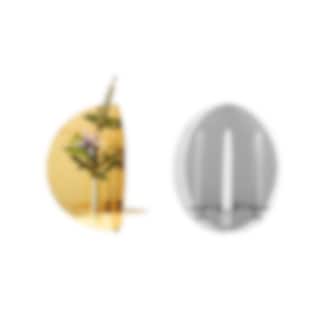 Twilight låter oss utforska reflektioner som skapar en extra dimension av djup. Vägglampetten, tillverkad i mässing eller rostfritt stål kan placeras antingen i ett hörn eller på en plan vägg. Du kan ändra dess funktion genom att använda ljushållaren eller vasen som medföljer.