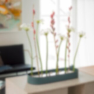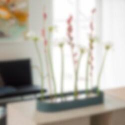 Jubel är designad av blomsterfantasten Hanna Wendelbo som tycker att det ska vara lätt att skapa vackra blomsterarrangemang för vem som helst. Vasen är tillverkad i rostfritt stål som delvist är pulverlackerad i en mörkgrön färg. Blanda dina favorit blommor och skapa ett personligt arrangemang till kvällens dukning eller placera den i ett fönster eller på ett sidebord. Insatsens sidor har olika design och går att vända på för olika uttryck.