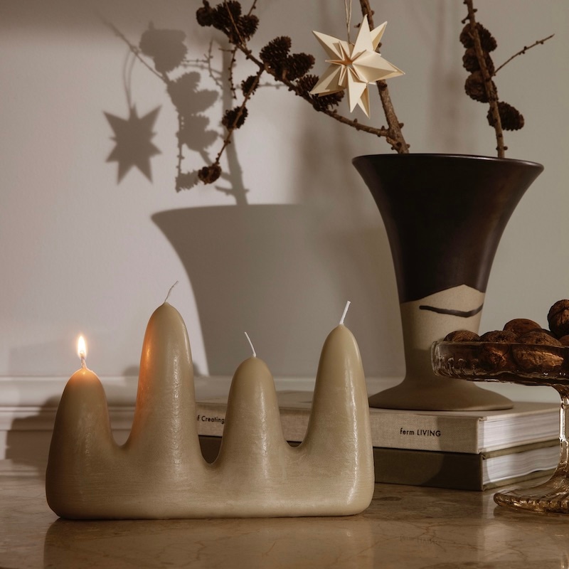 Stala ljus i sand från danska Ferm Living är ett vackert ljus i en organisk och iögonfallande design. Tack vare ljusets fyra vekar passar det lika bra att använda under sena sommarkvällar som under julens advent. Brinntid ca 20 h.