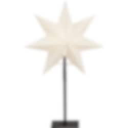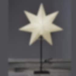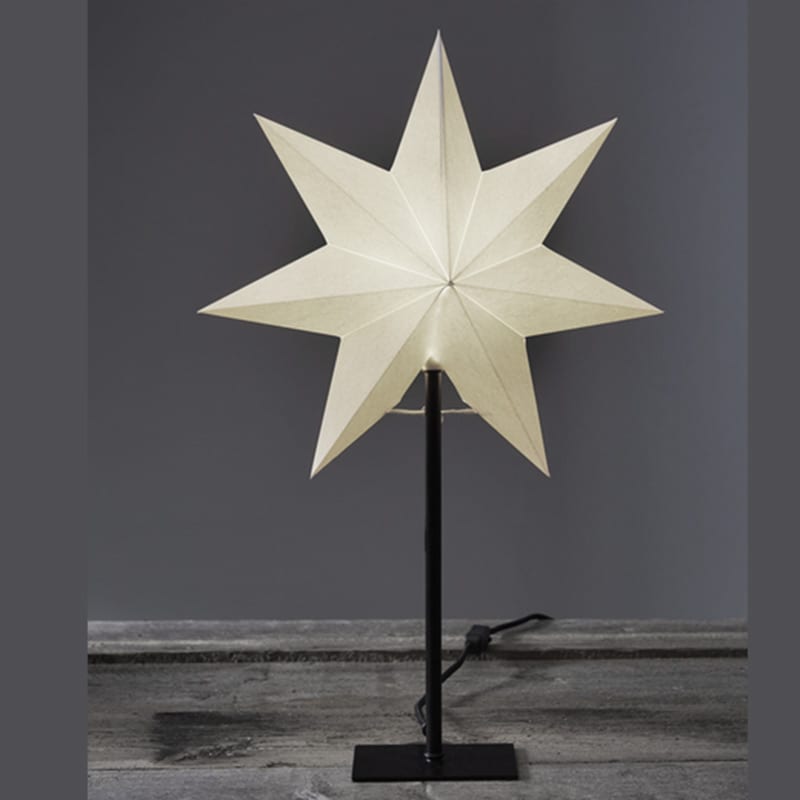 Frozen bordsstjärna är enkel att hitta plats för på fönsterbänken eller det sideboarden. Vit stjärna, på svart fot med svart textilsladd.