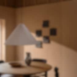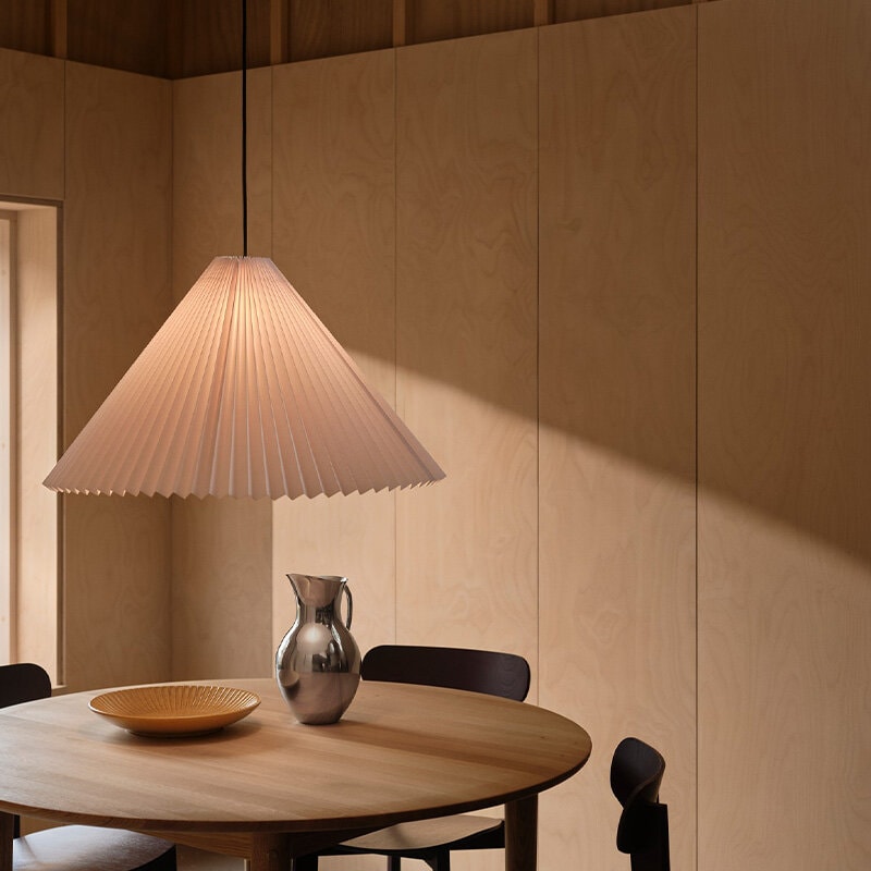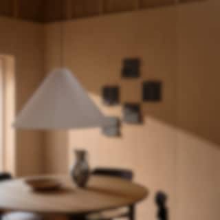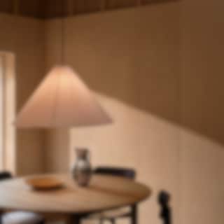 Lampan sprider ett mjukt, diffust ljus med varm ton som skapar en inbjudande och behaglig atmosfär.