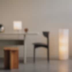 Boe bordslampa är ett exempel på skulptural design med subtil materialelegans. Tillverkad av bestruket japanskt washipapper och aluminium, kombinerar den mjuka, flödande kurvor med noggrant utformade strukturella detaljer och skapar ett dekorativt och atmosfäriskt ljus.
