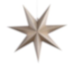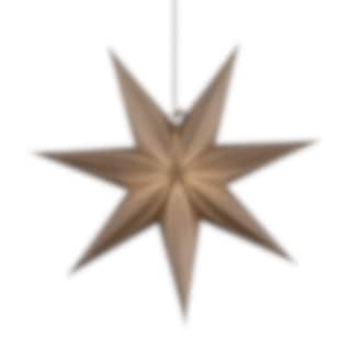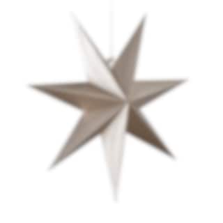 En handgjord papperstjärna i elegant champagnefärgat papper, med parallella hål i olika storlekar som bildar långa girlanger och skapar ett vackert ljusmönster över hela stjärnan. Henriette-serien finns i flera storlekar och färger, vilket gör det enkelt att kombinera och skapa en harmonisk juldekoration.