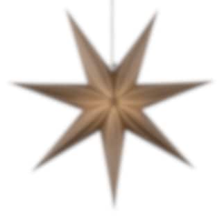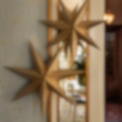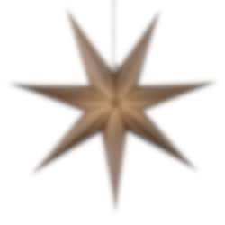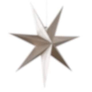 En handgjord papperstjärna i elegant champagnefärgat papper, med parallella hål i olika storlekar som bildar långa girlanger och skapar ett stämningsfullt ljusmönster över hela stjärnan. Henriette-serien finns i flera storlekar och färger, vilket gör det enkelt att kombinera och skapa en harmonisk juldekoration.