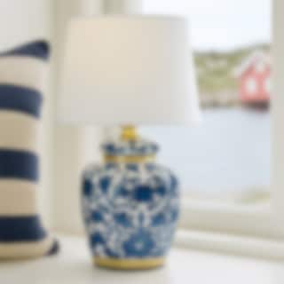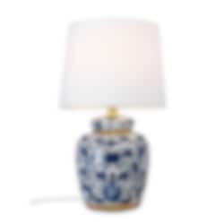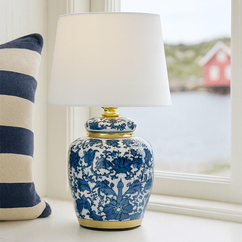 Ge ditt hem en touch av elegans med denna klassiska blå mini bordslampa. Lampfoten är tillverkad i porslin och pryds av ett vackert blåvitt mönster inspirerat av traditionell kinesisk keramik, vilket ger lampan ett tidlöst och dekorativt uttryck.