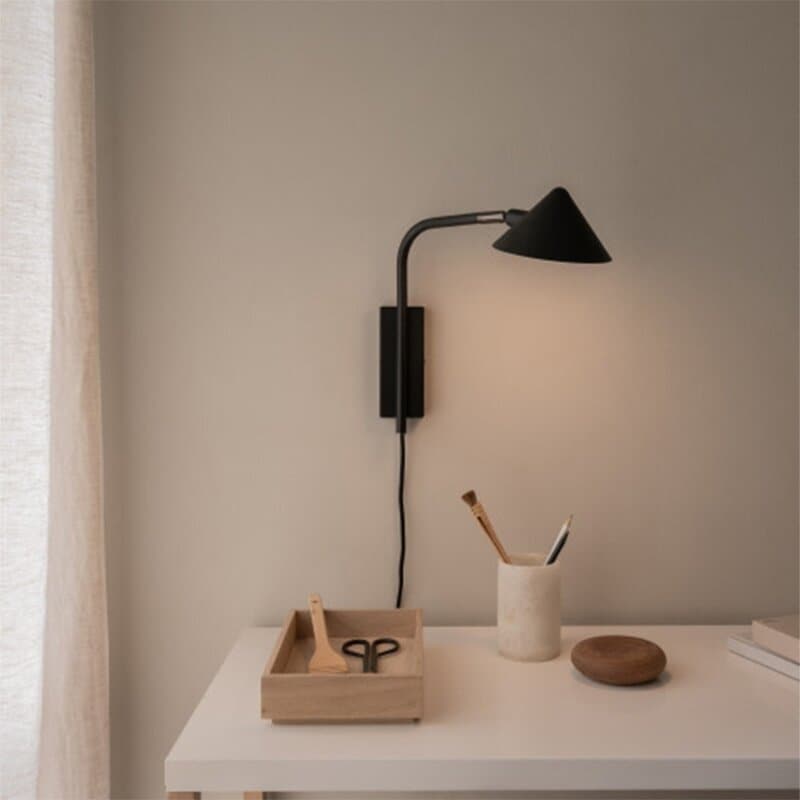 Kuro Wall är en elegant och mångsidig vägglampa som förenar tidlös design med maximal flexibilitet. Den konformade skärmen i svart metall och de subtila svartkromade detaljerna ger lampan en sofistikerad karaktär som passar både moderna och klassiska hem. Med vridbar arm och riktbar skärm kan ljuset enkelt styras dit det behövs, och den steglösa touchdimmern på lamparmen gör det möjligt att justera ljusstyrkan med en lätt beröring – från fokuserat arbetsljus till mjukt kvällsglöd. Kuro Wall levereras med svart textilsladd för smidig anslutning i vägguttag, men är även förberedd för fast montage för ett mer avskalat och sladdfritt uttryck. Lampan använder en energieffektiv G9 LED-ljuskälla (säljs separat) och är utrustad med bländskydd för en behaglig och jämn ljusspridning.