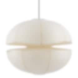 Mela är en lampskärm med en mjuk, organisk form inspirerad av siluetten hos en äppelskrutt. Varje produkt är unik samt har en midja med naturligt skiftande och oregelbunden siluett.