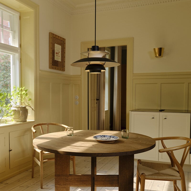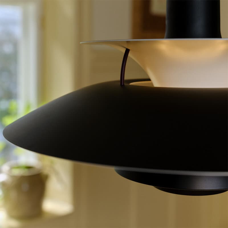 PH 5-pendeln som återfinns över många matbord i framförallt de danska hemmen. I samma serie hittar du även bord-, vägg-, golv- och utomhuslampor och i olika material som opalglas, koppar, krom, mässing och i regnbågens alla färger. Poul ligger även bakom