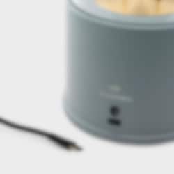 Tillverkad i borosilikatglas, aluminium och mässing, är The Muse designad för att enkelt kunna repareras över tid. Den helt sladdlösa lampan är perfekt för utomhusbruk och ger upp till 24 timmars ljus, med en praktisk, roterande Dim to Warm-dimmer som skapar ett varmt och stämningsfullt ljus.