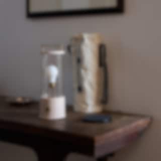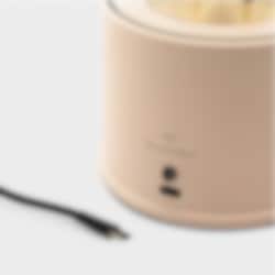 Tillverkad i borosilikatglas, aluminium och mässing, är The Muse designad för att enkelt kunna repareras över tid. Den helt sladdlösa lampan är perfekt för utomhusbruk och ger upp till 24 timmars ljus, med en praktisk, roterande Dim to Warm-dimmer som skapar ett varmt och stämningsfullt ljus.
