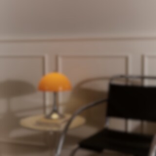 Bordslampan avger ett bländfritt, mjukt och behagligt ljus. Versionerna med opaque skärm riktar ljuset rakt nedåt och skapar en behaglig belysning tack vare den vita insidan och reflektionen från den trumpetformade lampfoten, medan versionerna med en opal skärm ger ett behagligt och diskret ljus tack vare att den är något genomskinlig och den nedåtriktade reflektionen från insidan av skärmen.