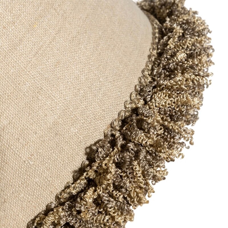 Denna stora cylinderskärm är omsorgsfullt handsydd och klädd i ett vackert, oblekt linne som ger ett naturligt och elegant uttryck. De fint invikta kanterna skapar en mjuk och genomarbetad finish, medan den kraftiga snörmakerifransen längs underkanten tillför en dekorativ och exklusiv känsla – inspirerad av detaljer som ofta återfinns på påkostade prydnadskuddar.