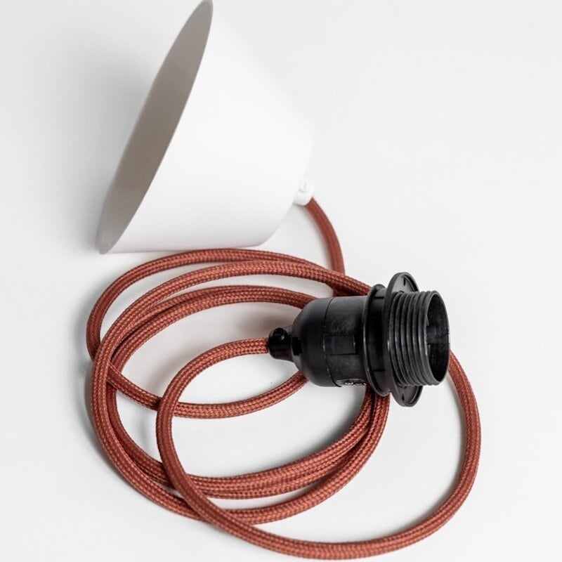 Ett takupphäng med textilklädd sladd, framtaget för att passa taklampskärmar med E27 fäste.