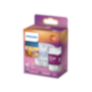Med Philips WarmGlow LED-lampor 2-pack kan du dimra din belysning till samma varma och ombonade ljus som hos traditionella glödlampor. När ljuset dämpas blir färgtemperaturen successivt varmare, vilket skapar en behaglig och stämningsfull atmosfär - till skillnad från vanliga dimbara LED-lampor som enbart minskar ljusstyrkan. WarmGlow-tekniken är nu ytterligare förbättrad med ett högt färgåtergivningsindex på 90, nära naturligt dagsljus, vilket gör att färger i hemmet återges på ett levande och korrekt sätt. Resultatet är flexibel belysning som passar lika bra för avkopplande kvällar som för en klar och energigivande start på dagen.