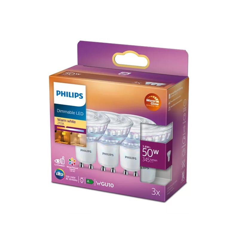 3-pack GU10 LED 3,8W (=50W) 345lm Warm Glow