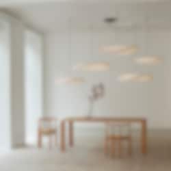 Ett moln kommer sällan ensamt. Tense Multi Takkopp för 5 lampor gör det möjligt att montera fem Tense taklampor, oavsett storlek, för att bilda ett voluminöst och kontemplativt arrangemang. Takkoppen samlar ihop och döljer kabeluttaget och låter blicken hänga kvar vid de upphängda skärmarna och det mjuka, förtrollande ljuset som utgår från konstellationen. Tense Multi Takkopp förmedlar volym och atmosfär genom att hitta sin perfekta miljö i vidsträckta utrymmen som entréhallar, höga vardagsrum eller i den exklusiva miljön av hotell- och restauranginteriörer.