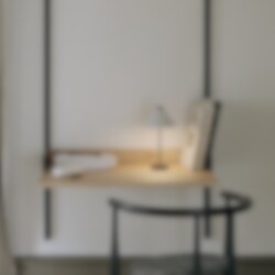 Brolly är en bärbar bordslampa i borstat stål som illustrerar kraften i enkla former. Precis och genomtänkt i sitt formspråk visar den lilla lampan försiktig enkelhet som kan ingå som en tidlös detalj i alla rum Trots att designen följer en strikt geometri, uppnår lampan en raffinerad och lite nyckfull närvaro från den känsliga staven som stöder den koniska lampskärmen.