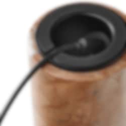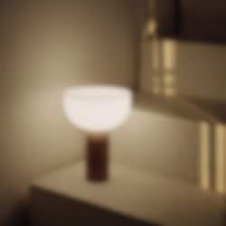 Kizu bordslampa balanserar djärva former och fascinerar ögat med sin skulpturala sammansättning, och denna bärbara version av lampan är inget undantag. Material och uttryck är som vi känner dem, men denna sladdlösa, mindre storlek är lätt att flytta runt där ljus behövs. Med marmor som bärelement får lampan naturlig stabilitet och den polerade stenen känns behaglig vid beröring. Eftersom ljuset sprids från hela den övre delen av lampan ger den lilla bordslampan ett högt ljusutbyte. En vänd försänkt metallcirkel på lampans ovansida tillför en förfinad detalj till designen, och genom att knacka försiktigt på cirkeln kan ljuset dämpas till tre olika nivåer. Kizu Bordslampa Portable har en batteritid på 10 timmar vid en ljusinställning på 100 % och laddas med en USB-C-kabel.