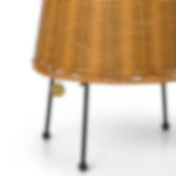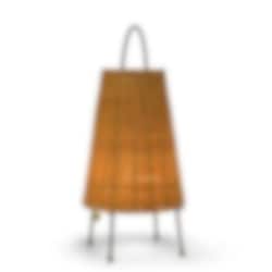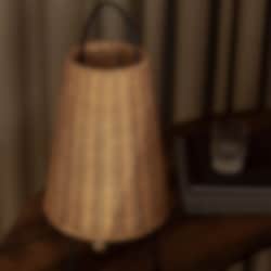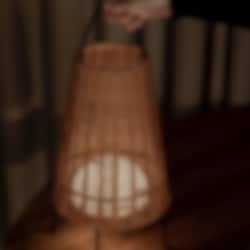 Porti Braided Lamp, som omtolkar formen och funktionen hos en lykta, är en mångsidig och bärbar lampa som kan användas i en mängd olika miljöer. Lampan avger ett mjukt och varmt ljus och har en flätad rottingskärm som vilar på en smal metallram, vilket resulterar i en charmig blandning av taktilitet och slankhet. Lampfoten har en svävande touch-funktion som gör att du kan kontrollera ljusintensiteten samt sätta på och släcka lampan med bara en lätt beröring eller tryckning, och justerbara fötter som hjälper dig att rikta in lampan på ojämna ytor.