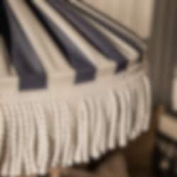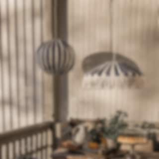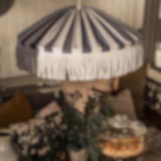 Skärmtyget och fransen är tillverkade i material av högsta kvalitet, speciellt utvalda för att klara det nordiska sommarvädret. De är vattenavvisande, UV-beständiga och har utmärkt färgbeständighet - vilket innebär att de behåller sin färg och form även i starkt solljus.