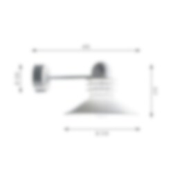 | Mått | Höjd: 21,5 cm Djup: 44,5 cm Diameter skärm: 31 cm Diameter väggfäste: 12 cm |