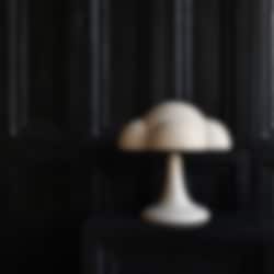 Fungus kommer med en keramisk lampskärm placerad ovanpå en metallram, monterad på en konformad lampfot.