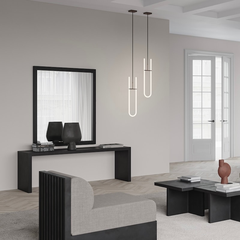 Förfinade metalldetaljer i vardera ände och strama, geometriska fästen i metall förstärker det grafiska uttrycket och ger Curve ett tydligt och modernt formspråk. Till skillnad från det kyliga ljus som ofta förknippas med neon avger Curve pendel ett mjukt och inbjudande sken som skapar en varm och ombonad atmosfär.